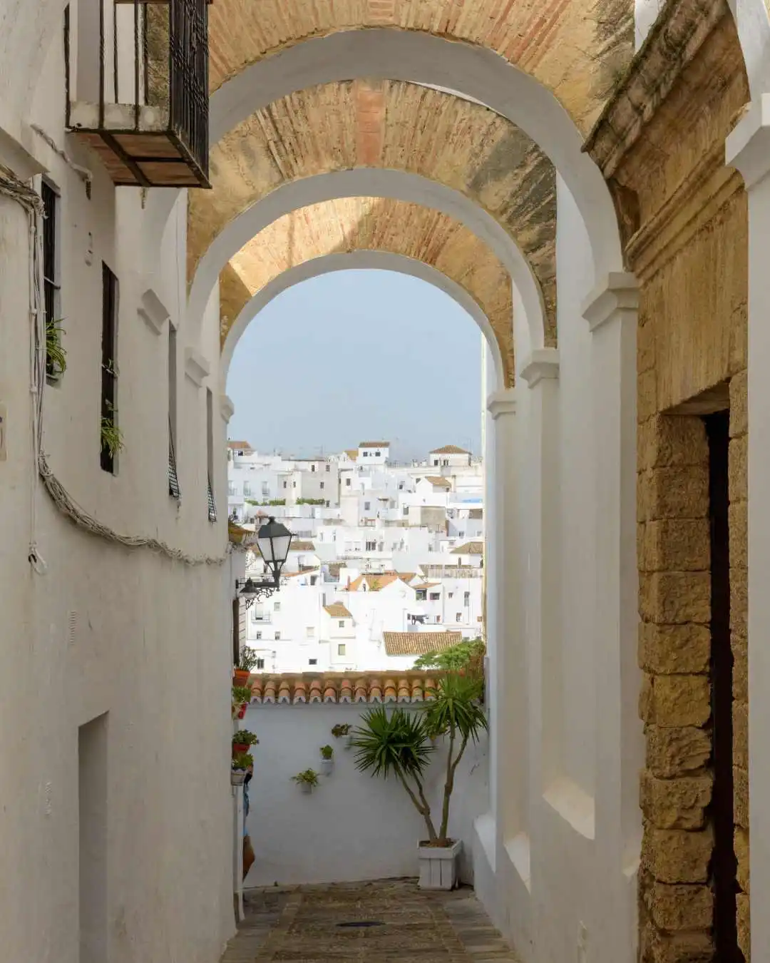 - Vejer de la Frontera (23 km) Considerado uno de los pueblos más bonitos de España, Vejer se alza sobre una colina con vistas infinitas. Sus calles laberínticas, casas encaladas con miradores de hierro forjado y su gastronomía (no te pierdas el atún de almadraba) lo convierten en visita obligada.